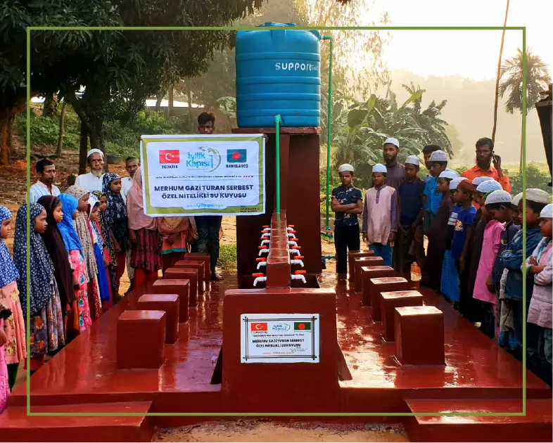 İyilik Kapısı İnsani Yardım Derneği olarak, gönülleri bizimle olan bağışçılarımız ile birlikte kritik bölgelerde su kuyuları açıyoruz. Bir su kuyusu açtırmak için imkanınız bulunmuyorsa oluşturduğumuz bağış havuzuna bir hisse su kuyusu bağışta bulunarak sizde açılacak olan su kuyularına ortak olabilirsiniz.